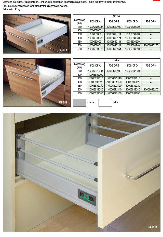 FDS-DF B 300,350,400,450,500,550mm fehér színben